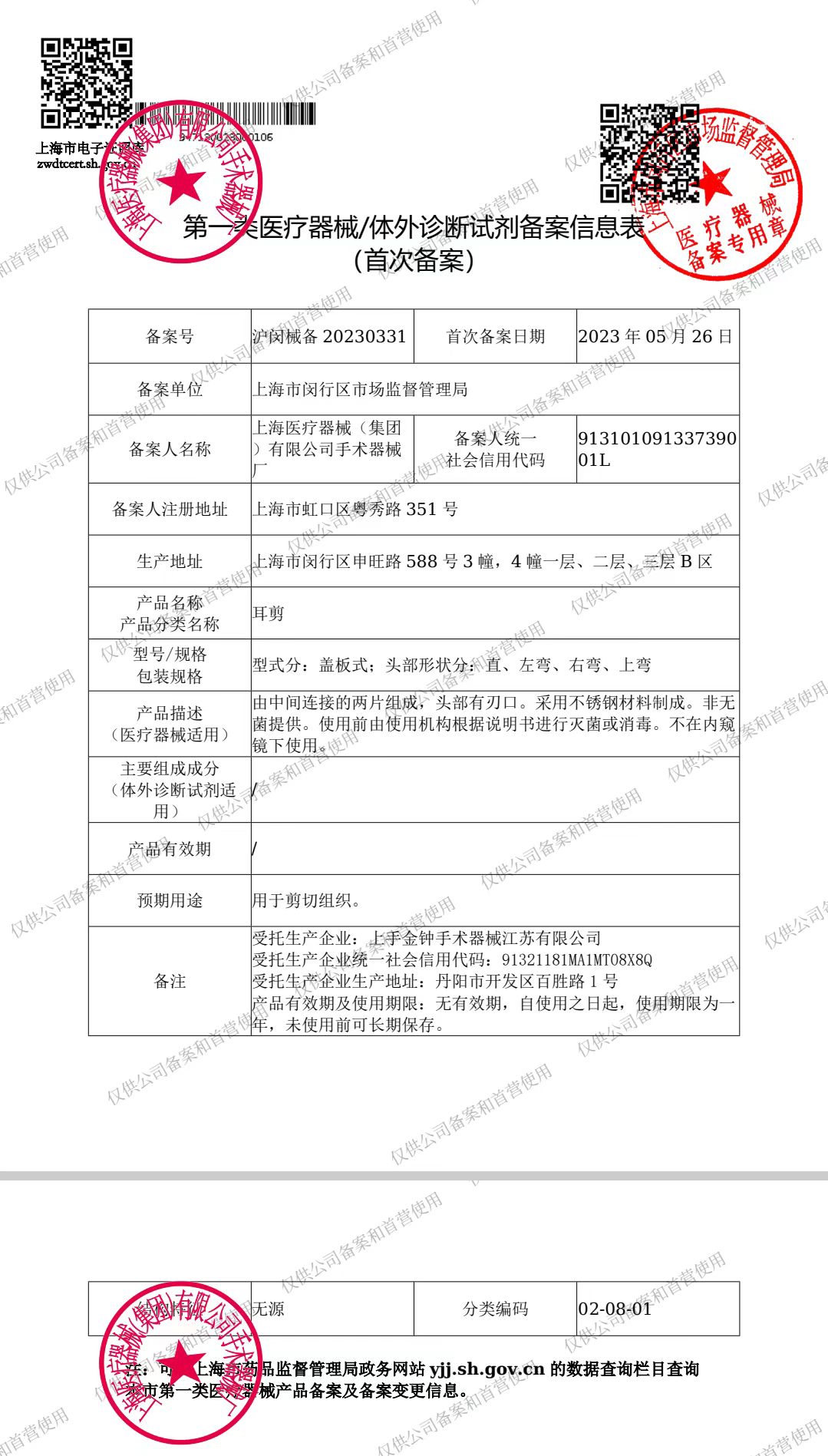 產(chǎn)品名稱 : 上海金鐘中耳剪7.5cm 蓋板式