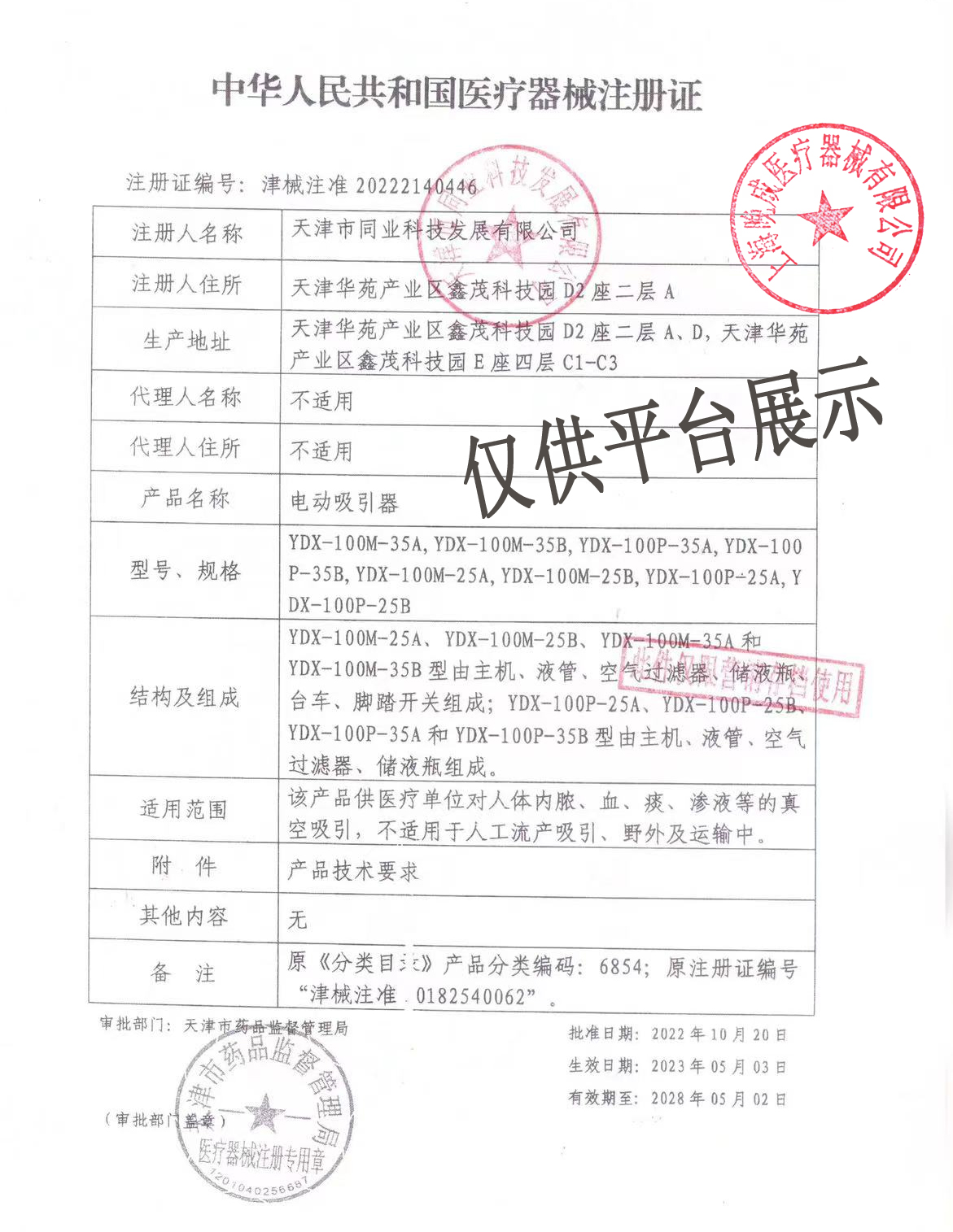 產(chǎn)品名稱 : | 天津同業(yè)電動吸引器YDX-100M-25A |