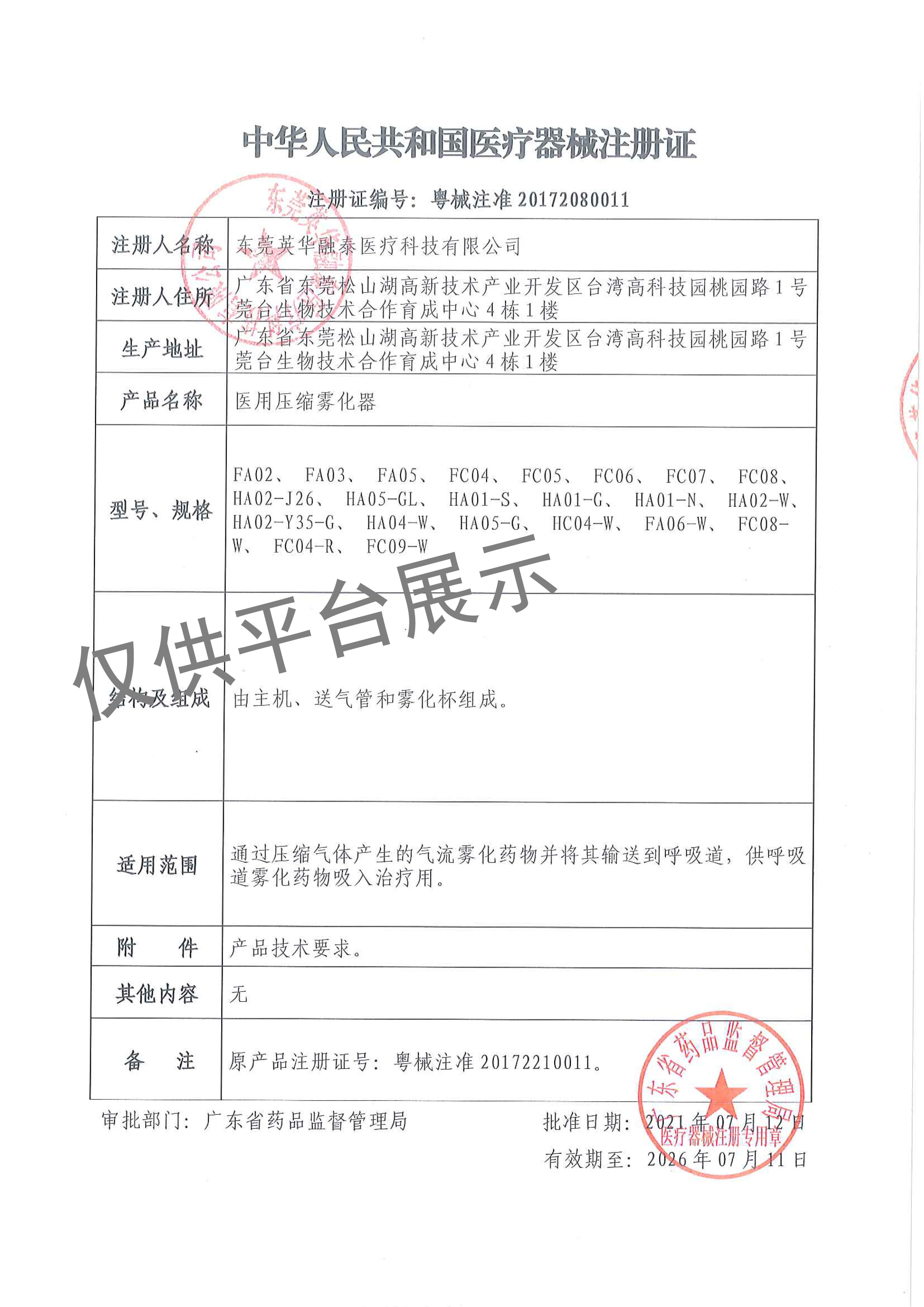 英華融泰小型醫(yī)用霧化器產(chǎn)品技術(shù)參數(shù):