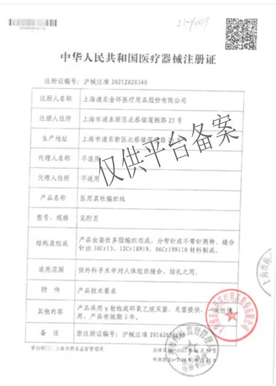 產(chǎn)品名稱 : 上海金環(huán)醫(yī)用真絲編織線