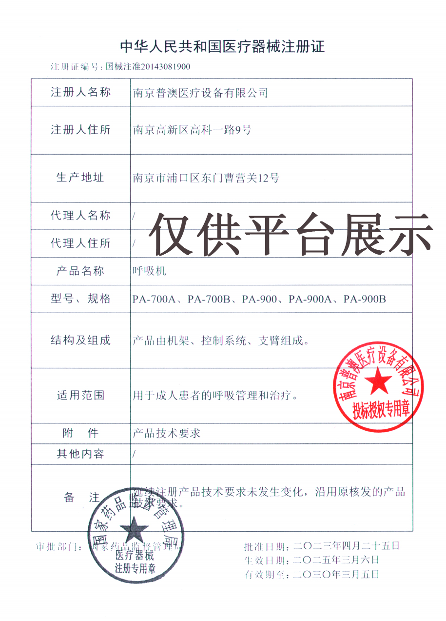 產(chǎn)品名稱 : 南京普澳呼吸機(jī)PA-700B