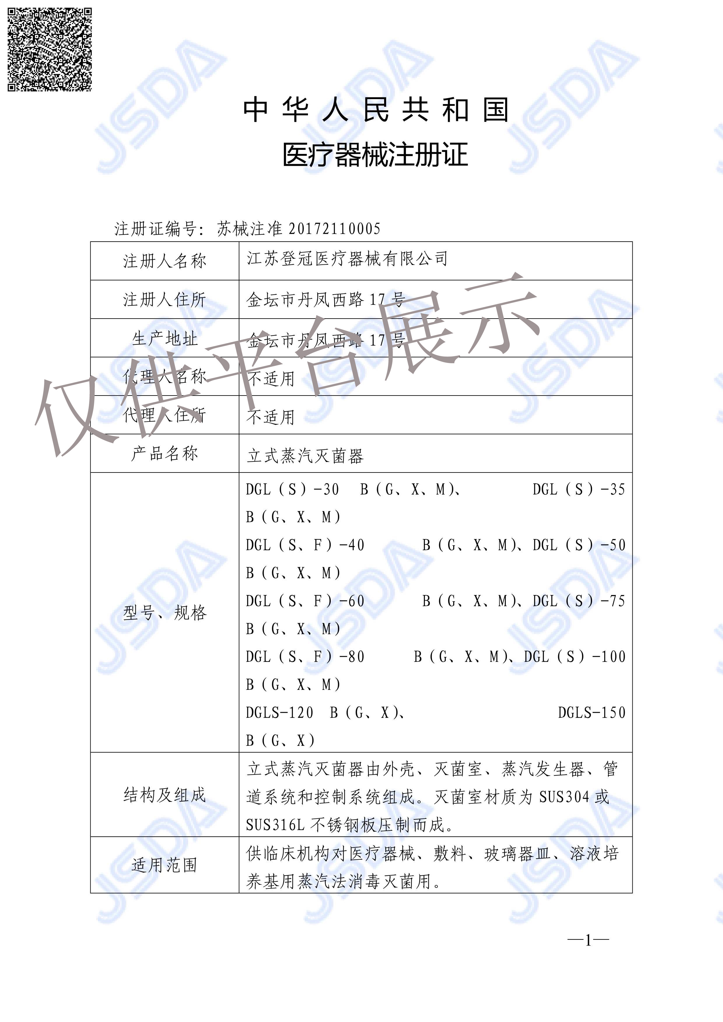 產(chǎn)品名稱 : | 登冠立式蒸汽滅菌器DGL-50B型 |