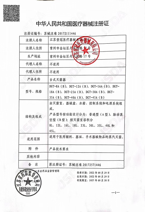 產(chǎn)品名稱 : | 登冠臺式滅菌器DGT-8B型 |