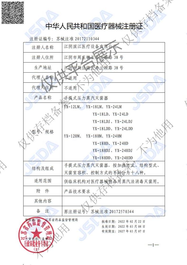 產(chǎn)品名稱 : | 濱江醫(yī)療手提式滅菌器YX-18HDD |