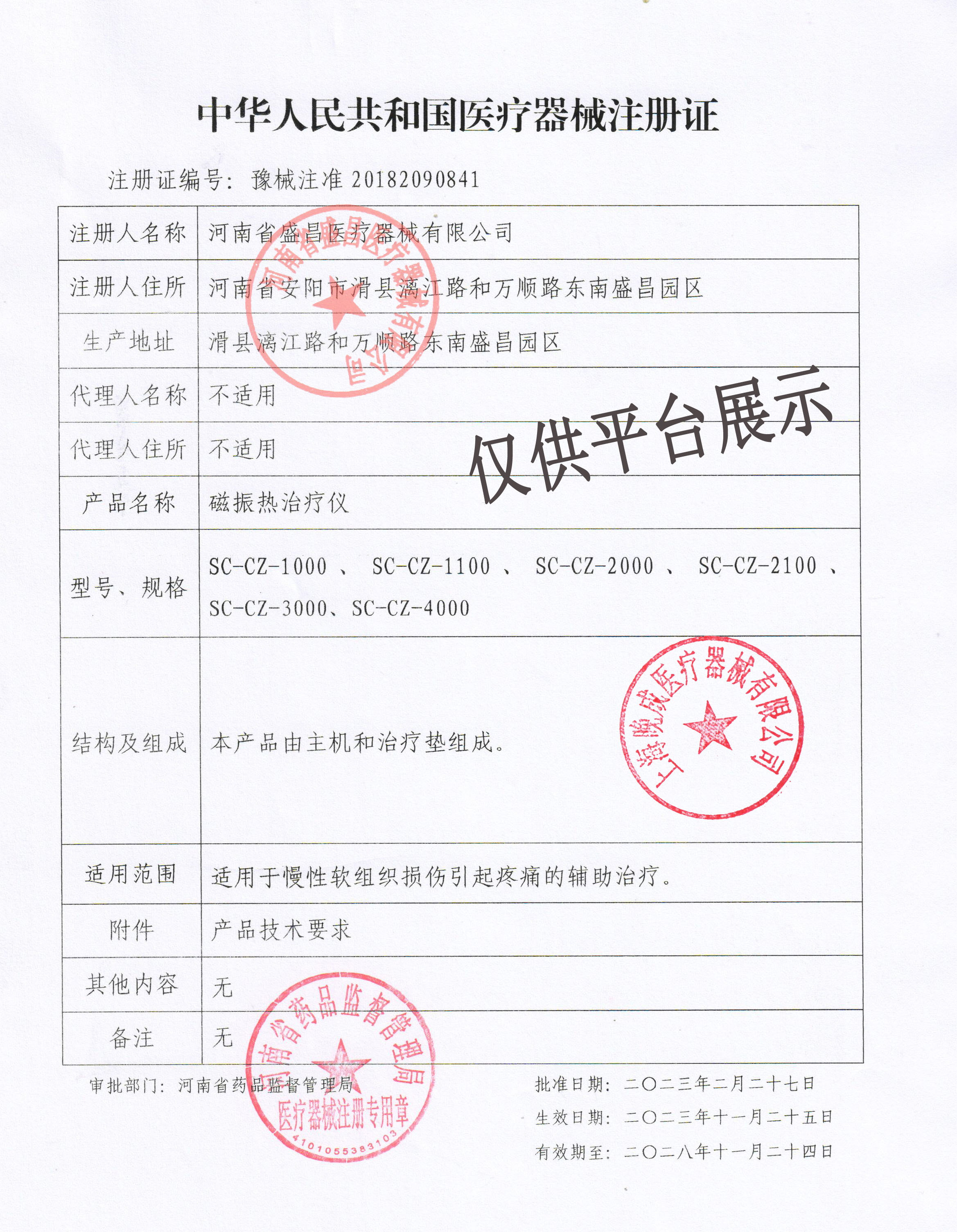 產(chǎn)品名稱 : | 盛昌 磁振熱治療儀(一體柜式) SC-CZ-4000型 |