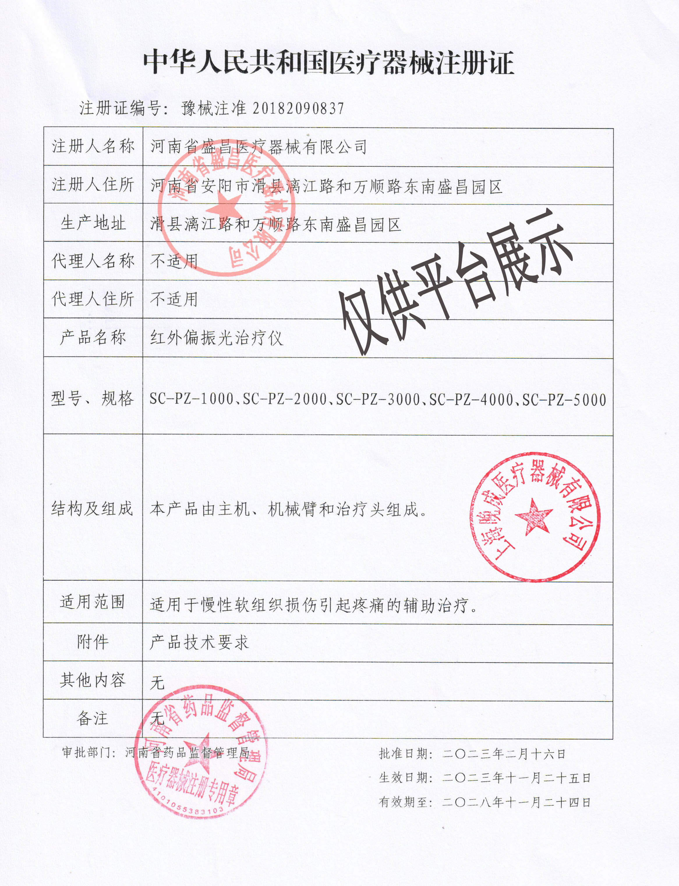 盛昌 紅外偏振光治療儀 SC-PZ-3000型 |