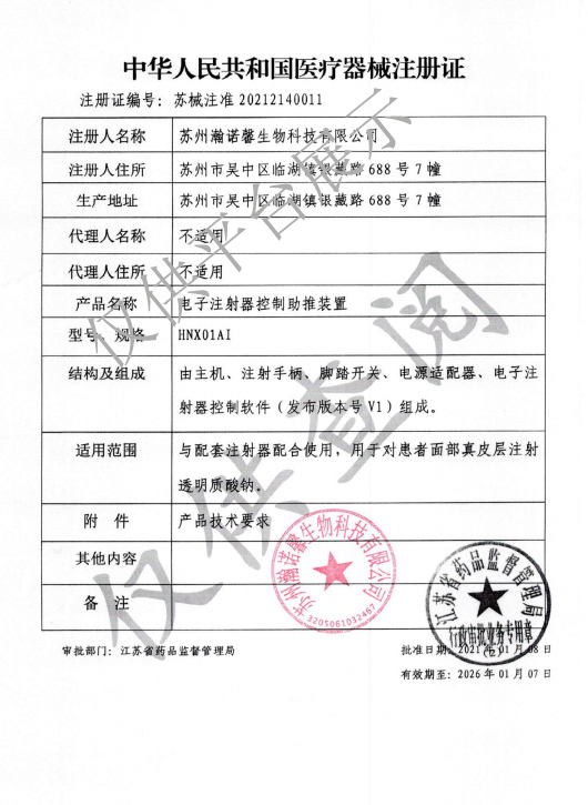 產(chǎn)品名稱 : 蘇州瀚爾馨水光機(jī)HNX01AI 瀚婭諾電子注射器控制助推裝置