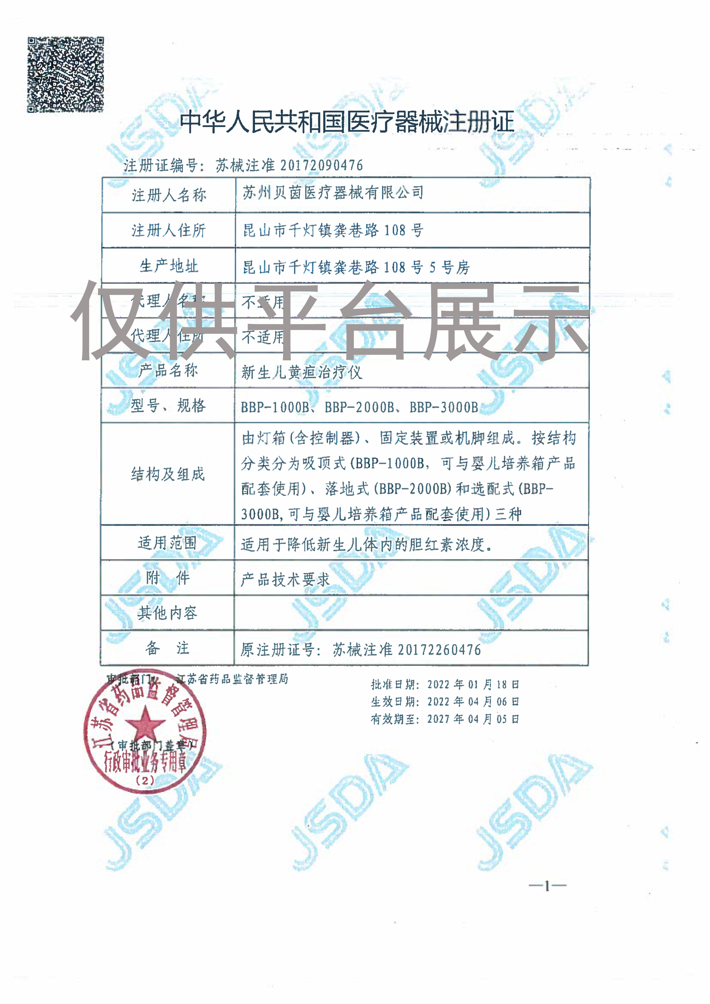 產(chǎn)品名稱 : | 貝茵B(yǎng)eing 新生兒黃疸治療儀 BBP-1000B |