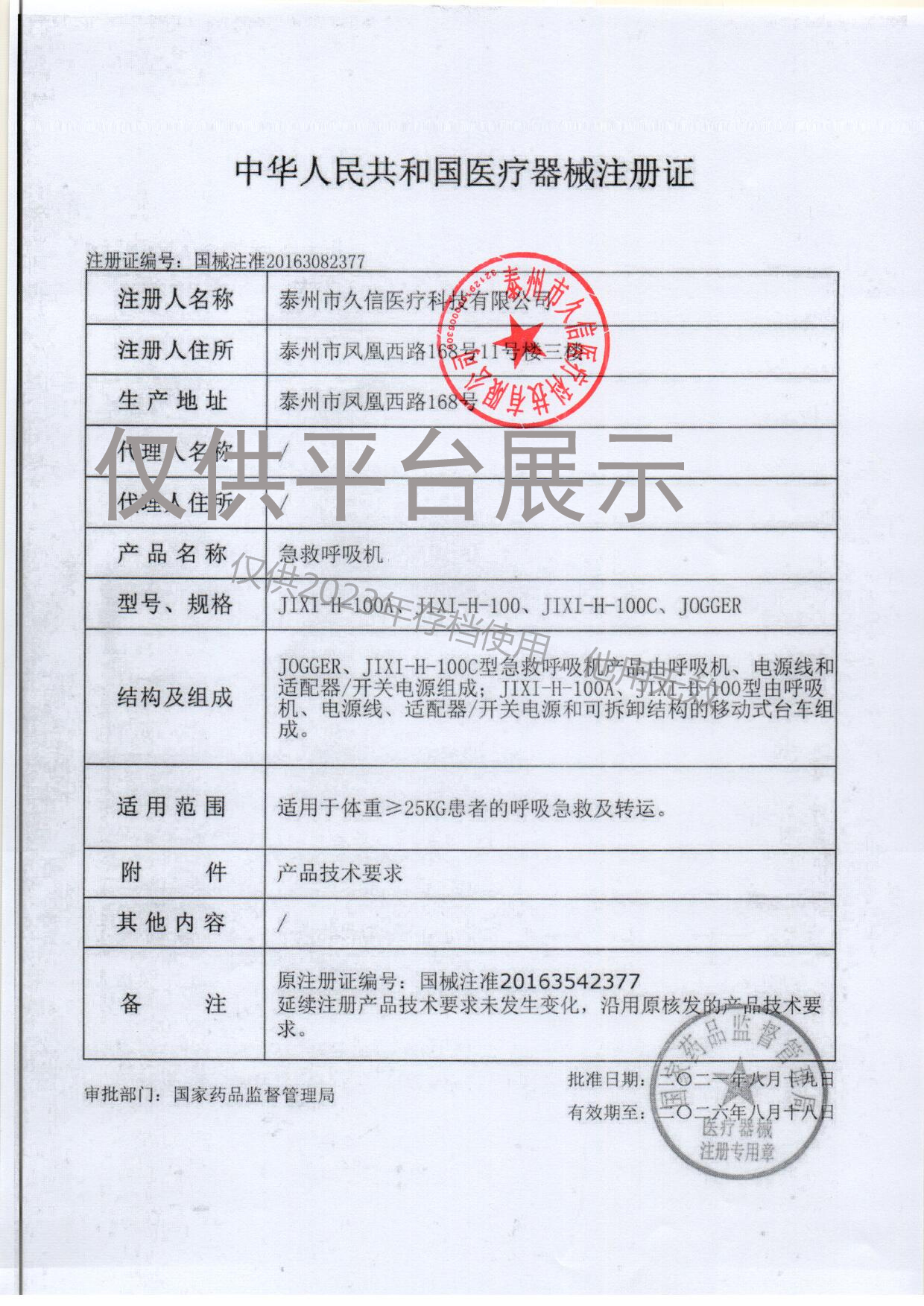 產(chǎn)品名稱 : | 九久信 便攜急救呼吸機JIXI-H-100C |