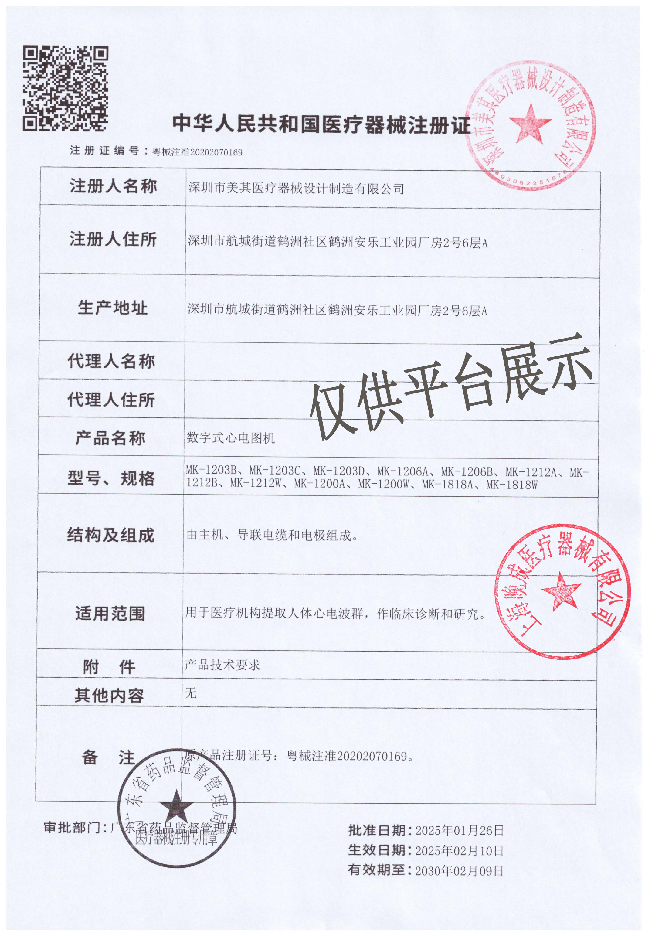 產(chǎn)品名稱 : 深圳美其 數(shù)字式心電圖機(jī)MK-1206A型