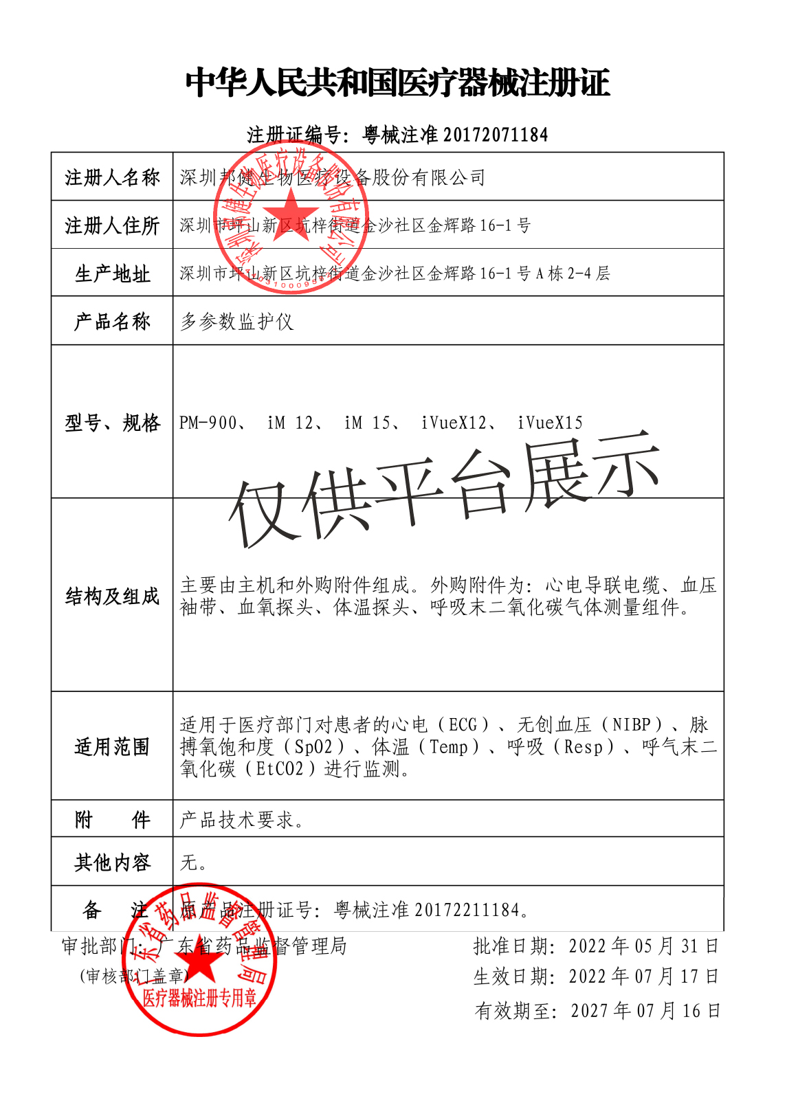 醫(yī)械網是一家提供邦健多參數監(jiān)護儀PM-900價格、參數介紹等信息的展示平臺,為您提供優(yōu)質的邦健多參數監(jiān)護儀PM-900產品,上海晚成醫(yī)療器械有限公司專注于各類醫(yī)療器械批發(fā)及零售,聯系電話:400-006-1850。