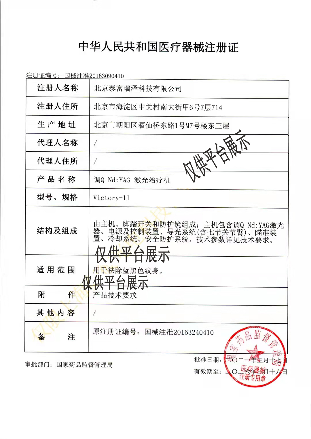 產(chǎn)品名稱 : | 泰富 調(diào)Q Nd:YAG激光治療機 Victory-11型 |