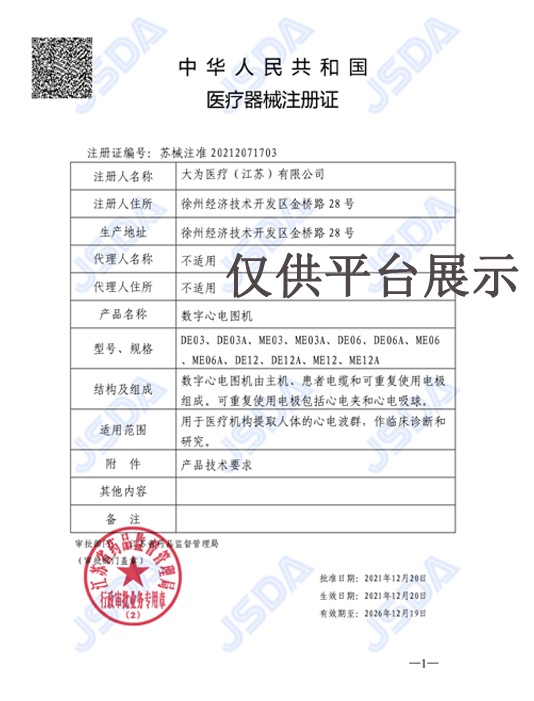 產(chǎn)品名稱 : 大為三道數(shù)字心電圖機(jī) ME03A 三導(dǎo)