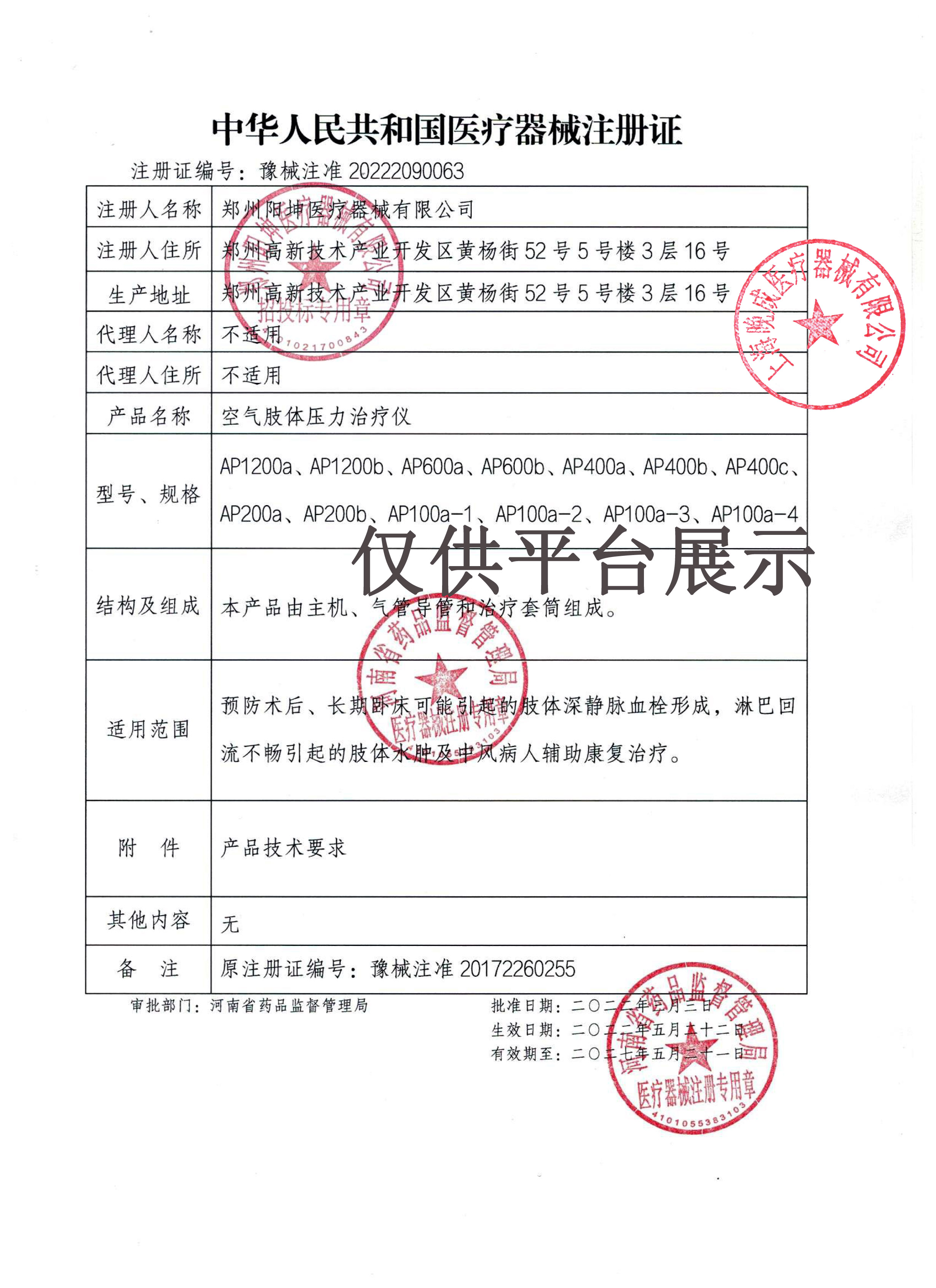 產(chǎn)品名稱 : | 陽坤 四腔空氣肢體壓力治療儀AP400b 三種治療模式 |