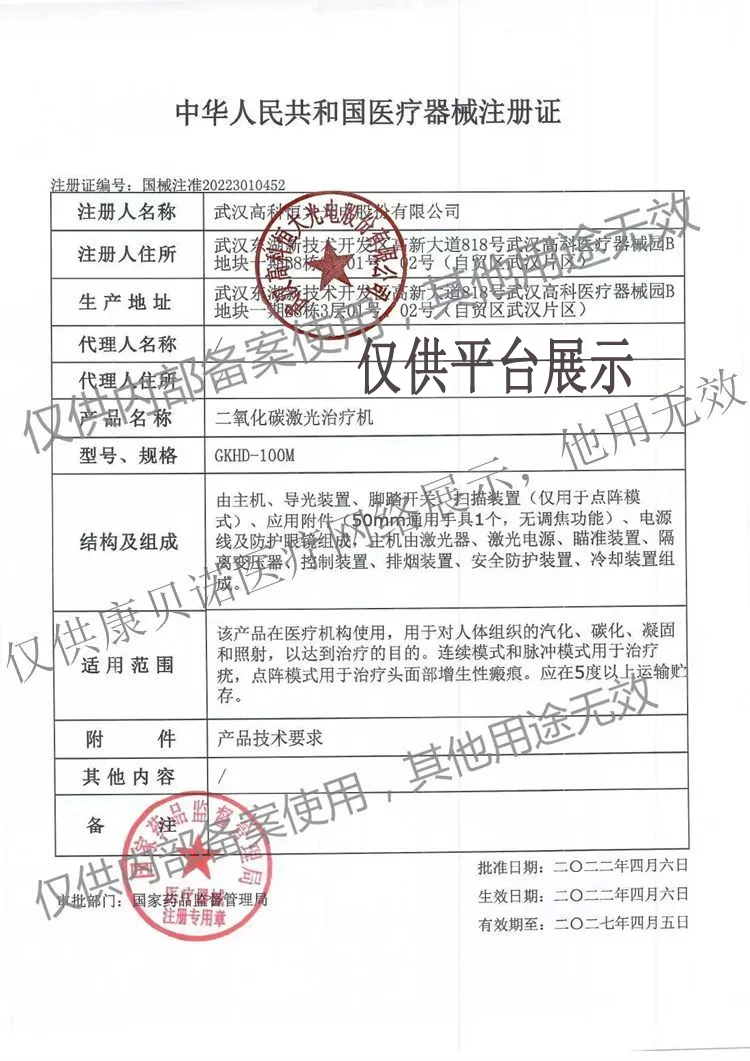 產(chǎn)品名稱 : | 高科恒大 GKHD-100M型二氧化碳激光治療機(玻璃管點陣激光) |
