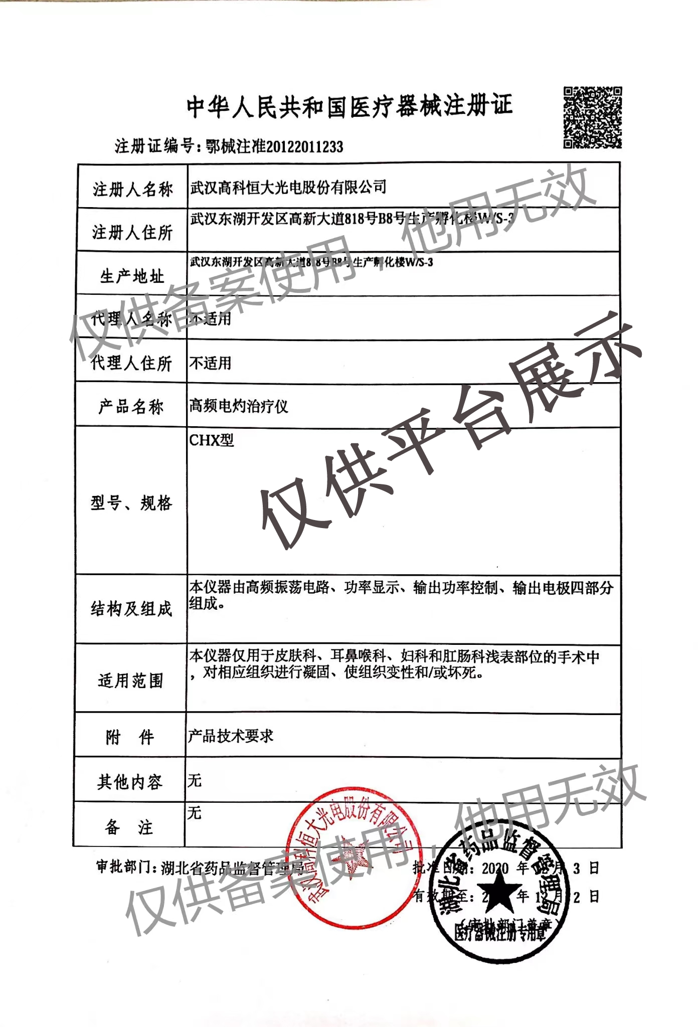 產(chǎn)品名稱 : | 高科恒大 CHX型高頻電灼治療儀 |