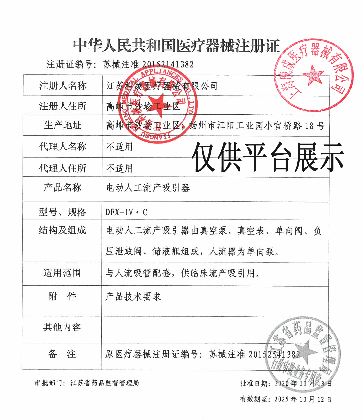 產(chǎn)品名稱 : | 科凌 Keling電動人工流產(chǎn)吸引器DFX-IV·C型 |