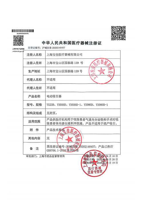 YX980D-1型電動吸引器是一種高負壓、大流量的醫(yī)用吸引裝置。該產(chǎn)品適用于醫(yī)療機構(gòu)吸出患者氣道內(nèi)分泌物,手術(shù)時吸除患者體內(nèi)滲出液和沖洗液。不適用于流產(chǎn)吸引。注冊證號:滬械注準(zhǔn)20202140407